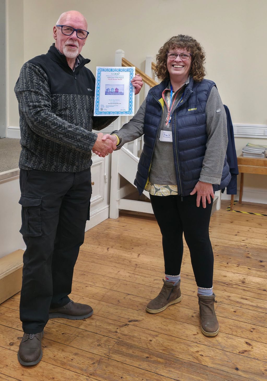 Andy presenting Jane with her Bronze Award for her image "Beach Hut Medley"