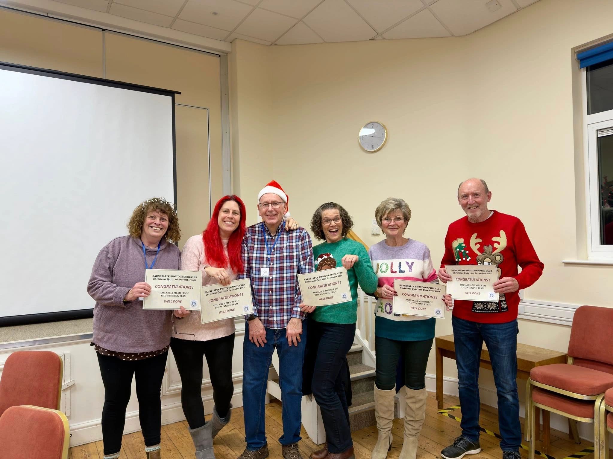 It was a great evening with a lot of keen quizzing. The winning team, The Mince Pies (with Question Master Steve wearing a hat) scored 92 out of 100.